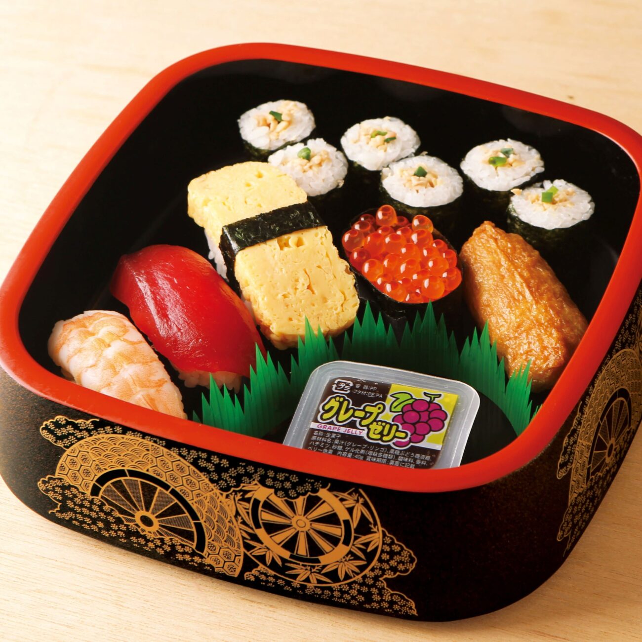 お子様が好きなネタばかりを集めました。ゼリーとおもちゃのおまけが付いた大変お得な盛り合わせです。 細巻きをお選びください。 【内容】まぐろ赤身・海老・細巻き(納豆巻き・かんぴょう巻き・かっぱ巻きからお選びください)・いなり・玉子(にぎり)・いくら・ゼリー ※おもちゃ付き ※わさび抜きです